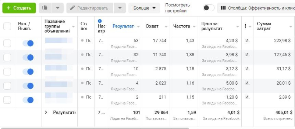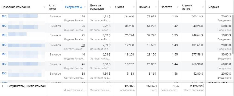Cкриншоты результатов кампаний из рекламных кабинетов: